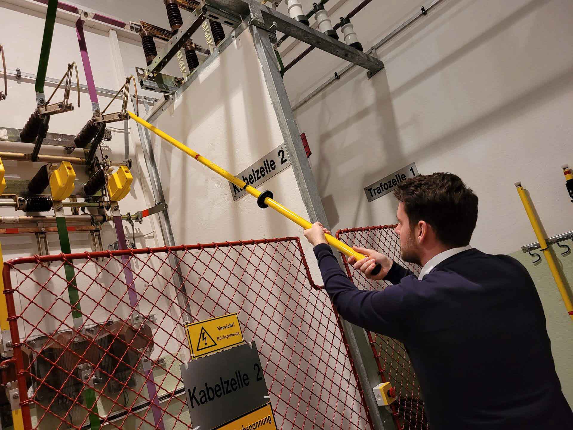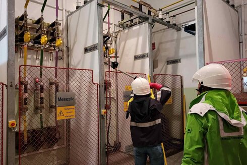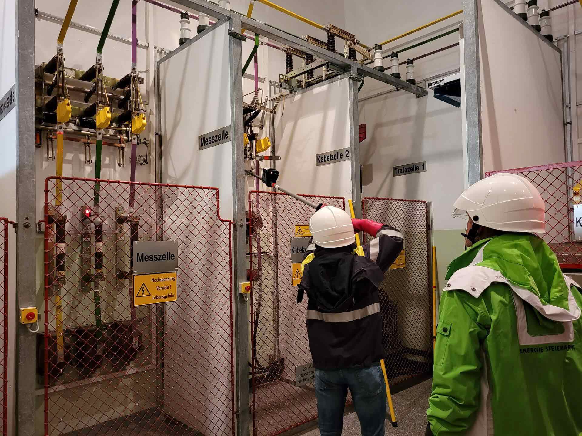 Der zweite Kursteil folgte im Umspannwerk Webling. Dort konnten die Teilnehmer die gelernten Inhalte an einer Hochspannungsanlage der Energienetze Steiermark vertiefen. Ein Mitarbeiter der Energienetze Steiermark führte Schaltungen an einer Freiluft- und Gasisolierten-Hochspannungsanlage durch. Vor Ort bekamen die Kursteilnehmer außerdem weitere theoretische Inhalte vermittelt. Im Anschluss fand die Abschlussprüfung statt.