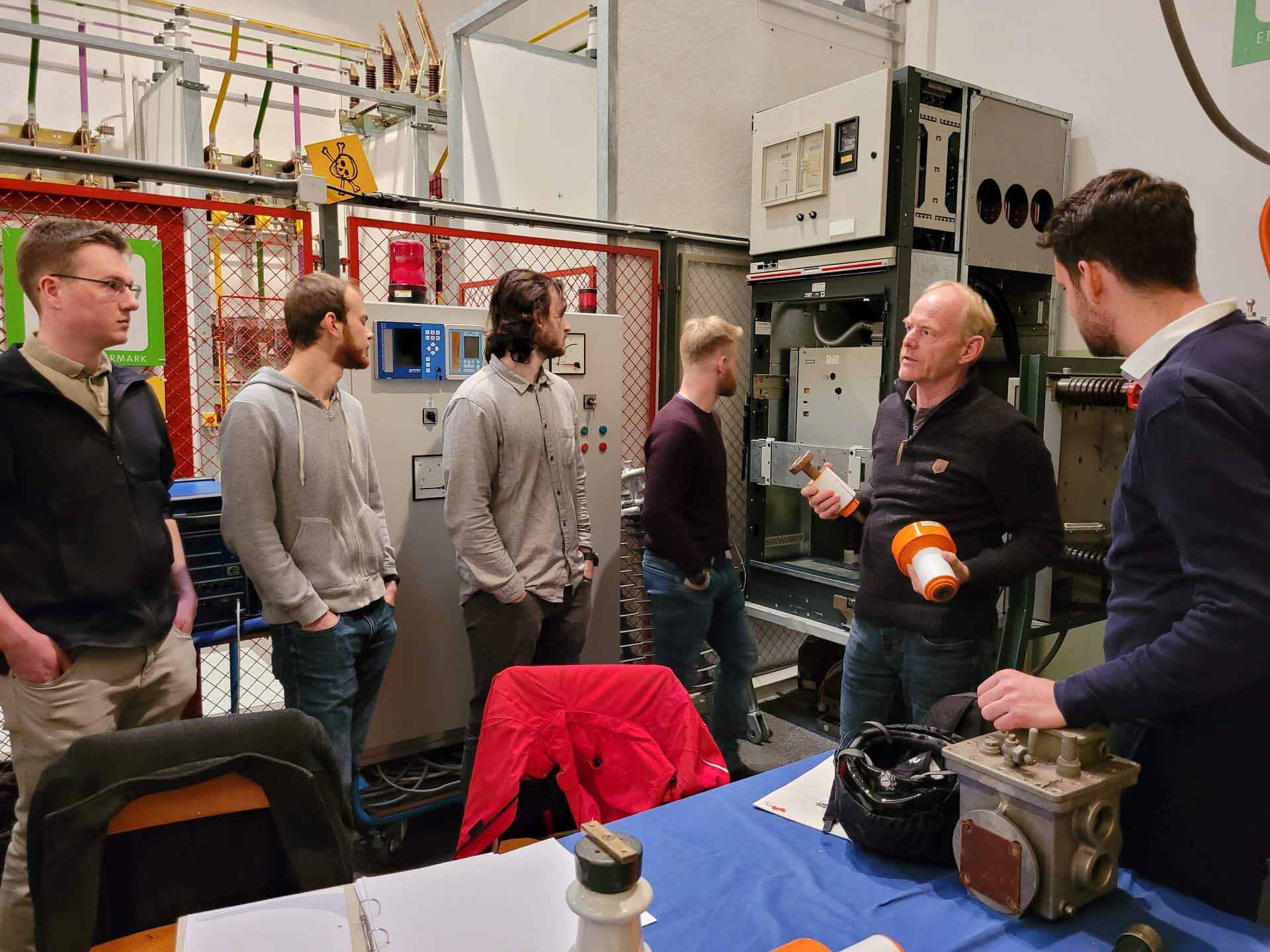 Der erste Teil des Hochspannungsschaltkurses fand an der HTL Bulme statt. Nach einem theoretischen Teil und einer Sicherheitseinschulung führten die Teilnehmer Hochspannungsschaltungen an einer 20-kV Schaltanlage durch. Begleitet wurde die Praxiseinheit von Prof. Wilfried Weigend (HTL Bulme).