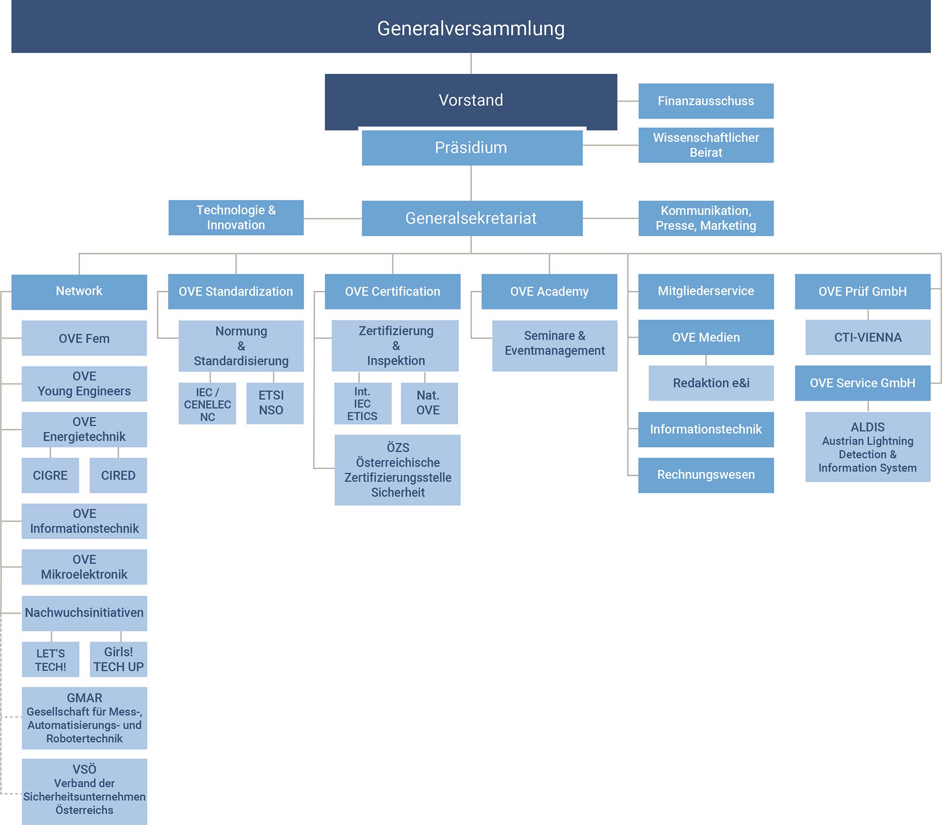 Hier können Sie sich das Organigramm herunterladen und finden eine Übersicht über die Gremien des OVE.