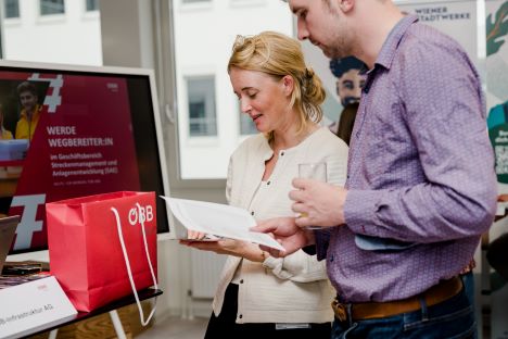 Beim gemütlichen „Netzwerkspritzer“ am Abend konnten die Young Engineers in ungezwungener Atmosphäre mit Expert:innen aus dem OVE-Netzwerk ins Gespräch kommen. Hier wurden konkrete Karrieremöglichkeiten und potentielle gemeinsame Projekte besprochen. Zudem gab es die Möglichkeit bei Tina Landreau vom TU Career Center einen CV-Check durchzuführen und sich zu persönlichen Karrierefragen beraten zu lassen. Versorgt wurden die Teilnehmer:innen mit vegetarischen Köstlichkeiten des ÖBB Bistro.
