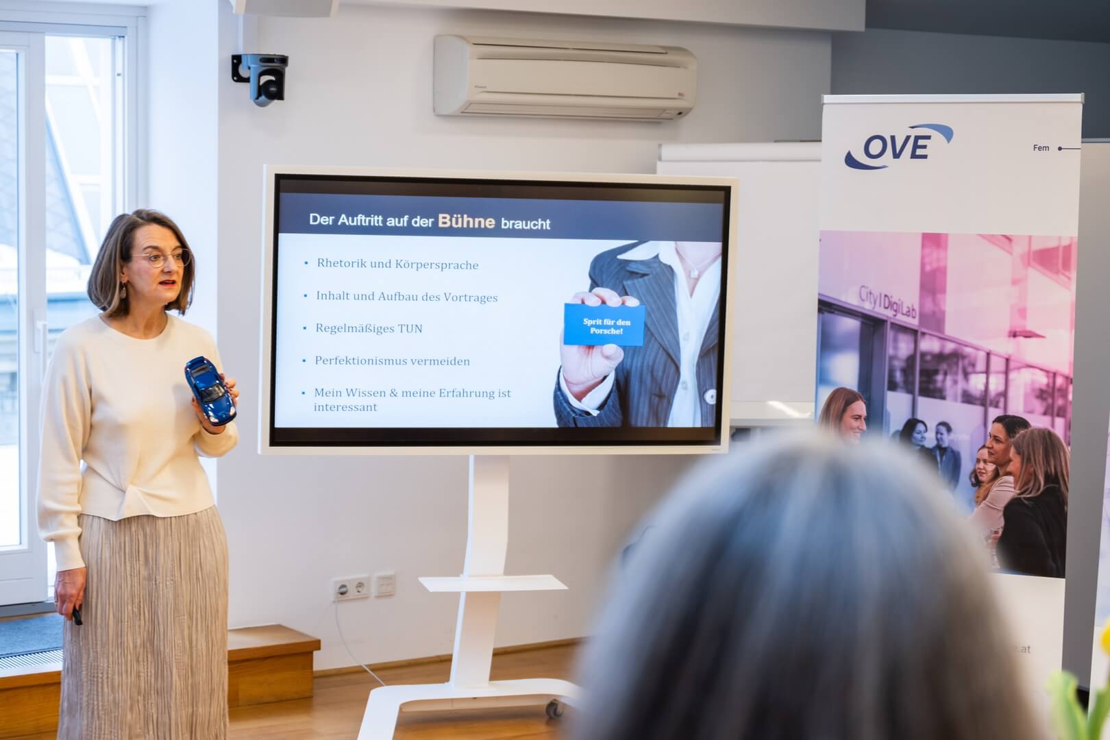 Eine klare Rhetorik, eine bewusste Körpersprache und ein gut strukturierter Inhalt sind laut Claudia Spary die wesentlichen Faktoren für einen gelungenen Auftritt. Perfektionismus hingegen sei – so die Expertin – eher hinderlich; vielmehr gilt es, sich bewusst zu machen, dass das eigene Wissen und die eigene Erfahrung wertvoll und relevant sind – auch wenn sie einem selbst selbstverständlich erscheinen.