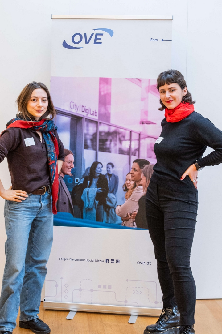 Im weiteren Verlauf wurde das seit Herbst 2025 laufende OVE Fem‑Mentoring‑Programm vorgestellt. Danach berichteten vier Mentorinnen und zwei Mentees, die unter den Teilnehmerinnen waren, über ihre bisherigen Erfahrungen und gaben Einblicke in ihr Miteinander.