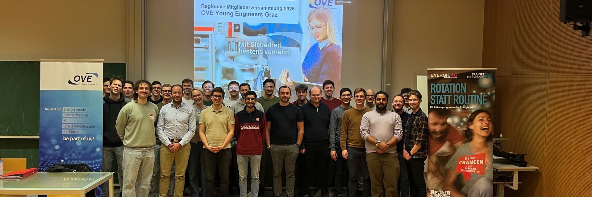 Genau eine Woche später, am 13. März fand auch die regionale Mitgliederversammlung der OVE Young Engineers Graz statt. Neben vielen langjährigen Young Engineers waren auch einige Neumitglieder unter den Teilnehmer:innen im Hörsaal 1 an der TU Graz dabei.