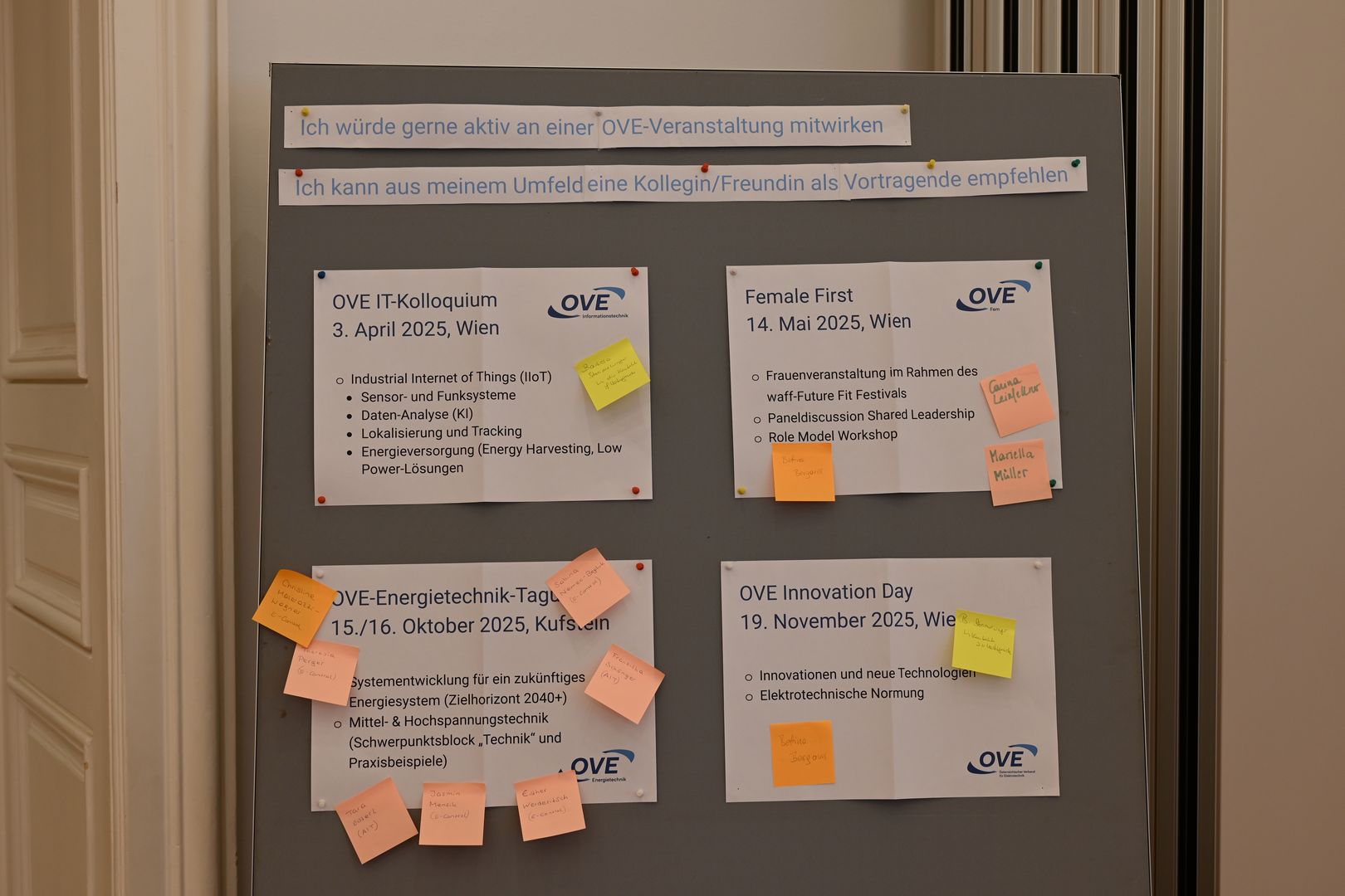 Im zweiten Teil der Veranstaltung standen der Ideen-Austausch und das Netzwerken im Mittelpunkt. Gemeinsam wurde über neue Veranstaltungsformate nachgedacht, die Erarbeitung eines OVE Fem-Mentoring-Programms diskutiert und überlegt, welche Technik-Expertinnen im Rahmen von Tagungen und Symposien einen aktiven Beitrag als Vortragende leisten könnten – nicht nur, um ihre Expertise einzubringen, sondern auch um Frauen in der Technik zu mehr Sichtbarkeit zu verhelfen.