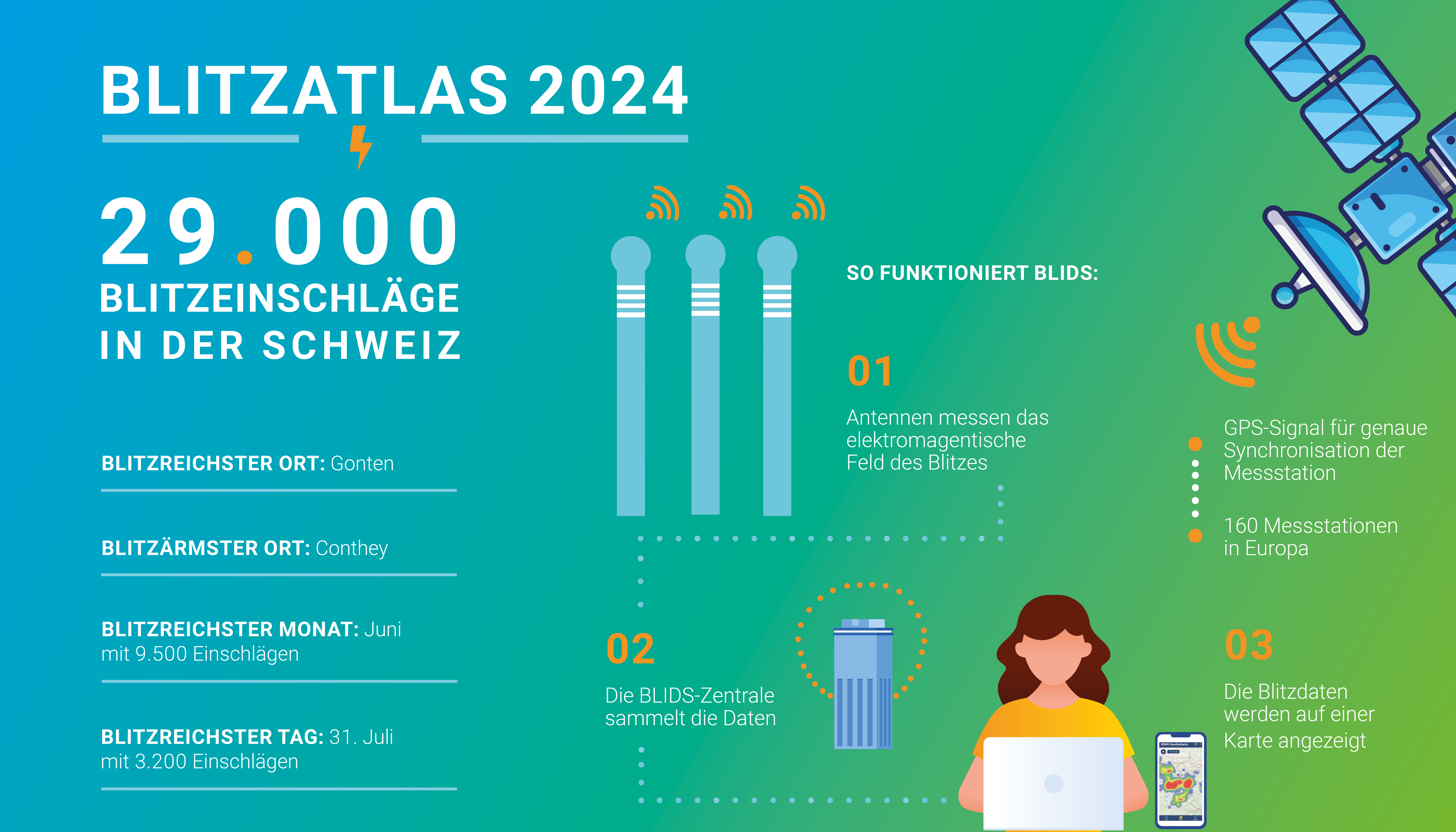 ALDIS/BLIDS-Blitzatlas: Gonten ist Schweizer Blitz-Hotspot 2024