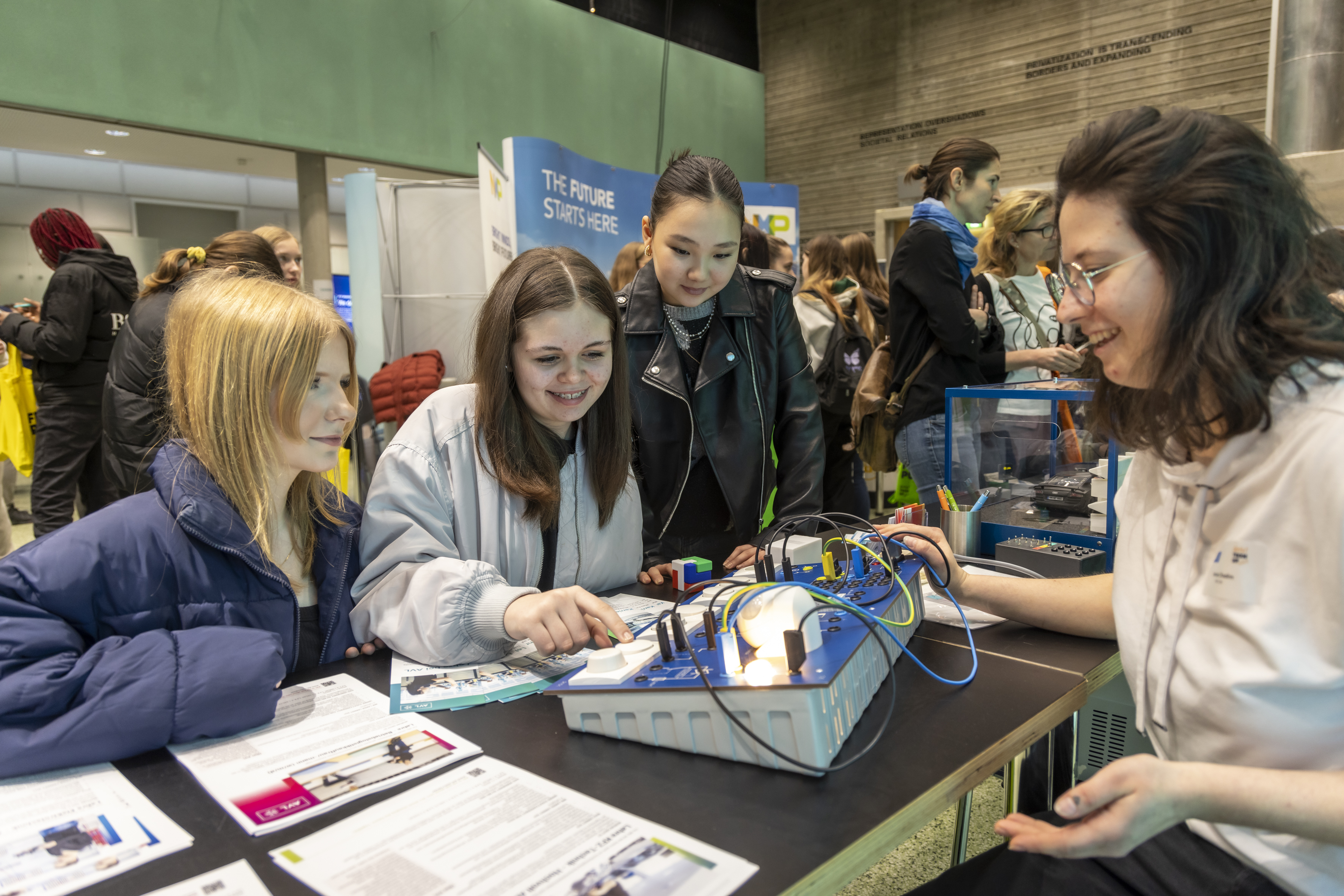 Ob mit Künstlicher Intelligenz ein leuchtendes Muster gestalten oder mittels virtueller Anleitung über eine AR-Brille eine Drohne bauen – die abwechslungsreichen Mitmachstationen machten die Welt der Elektro- und Informationstechnik für die Schülerinnen zum Erlebnis. Neben Technik zum Angreifen und Ausprobieren gab es bei Girls! TECH UP auch die Gelegenheit, erfahrene Technikerinnen und Ingenieurinnen kennenzulernen und erste Kontakte zu erfolgreichen Unternehmen der Branche zu knüpfen. „Unsere Mitmachstationen und unsere engagierten Role Models sind für viele Mädchen der erste Kontakt zur Berufswelt der Elektro- und Informationstechnik. Umso schöner ist es, ihre spontane Begeisterung mitzuerleben und ihnen gleichzeitig als Anlaufstelle für Branchenkontakte zur Seite zu stehen“, freut sich Girls! TECH UP-Initiatorin Michaela Leonhardt.
