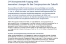 Presseinformation 09.09.2025 OVE-Energietechnik-Tagung 2025: Innovative Lösungen für das Energiesystem der Zukunft Die wesentlichen Schritte für die Umsetzung eines nachhaltigen und zukunftssicheren…