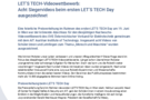 Presseinformation 20.06.2023 LET’S TECH-Videowettbewerb: Acht Siegervideos beim ersten LET’S TECH Day ausgezeichnet Eine feierliche Preisverleihung im Rahmen des ersten LET’S TECH Day am 19. Juni in…
