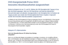 Presseinformation 25.10.2022 OVE-Energietechnik-Preise 2022: Innovative Abschlussarbeiten ausgezeichnet Äußerst erfolgreich ist am 19. und 20. Oktober die OVE-Energietechnik-Tagung in Graz über die…